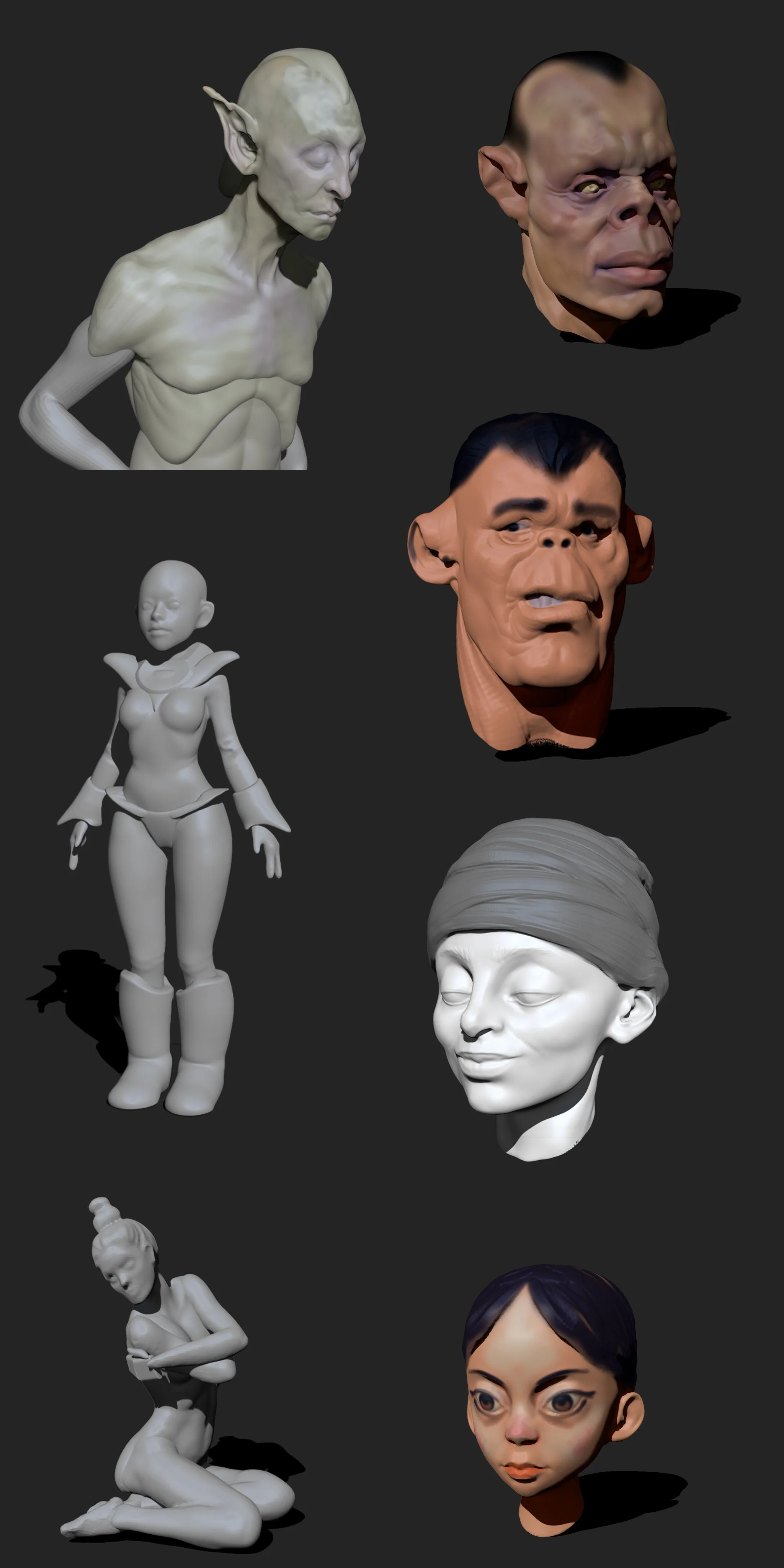 This is a gathering of exploring ideas by sculpting quickly in Zbrush.